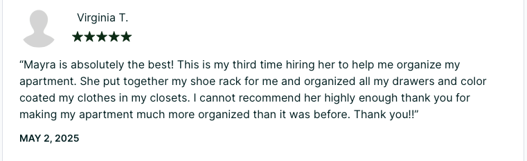 - People choose us because we’re quick and efficient. Most organization bookings are similar, but there are times when we have to create a bespoke organization system for our clients. We try to make sure that it’s functional for your every day life based on your needs. If you have a specific vision please relay that to the organizer upon arrival.